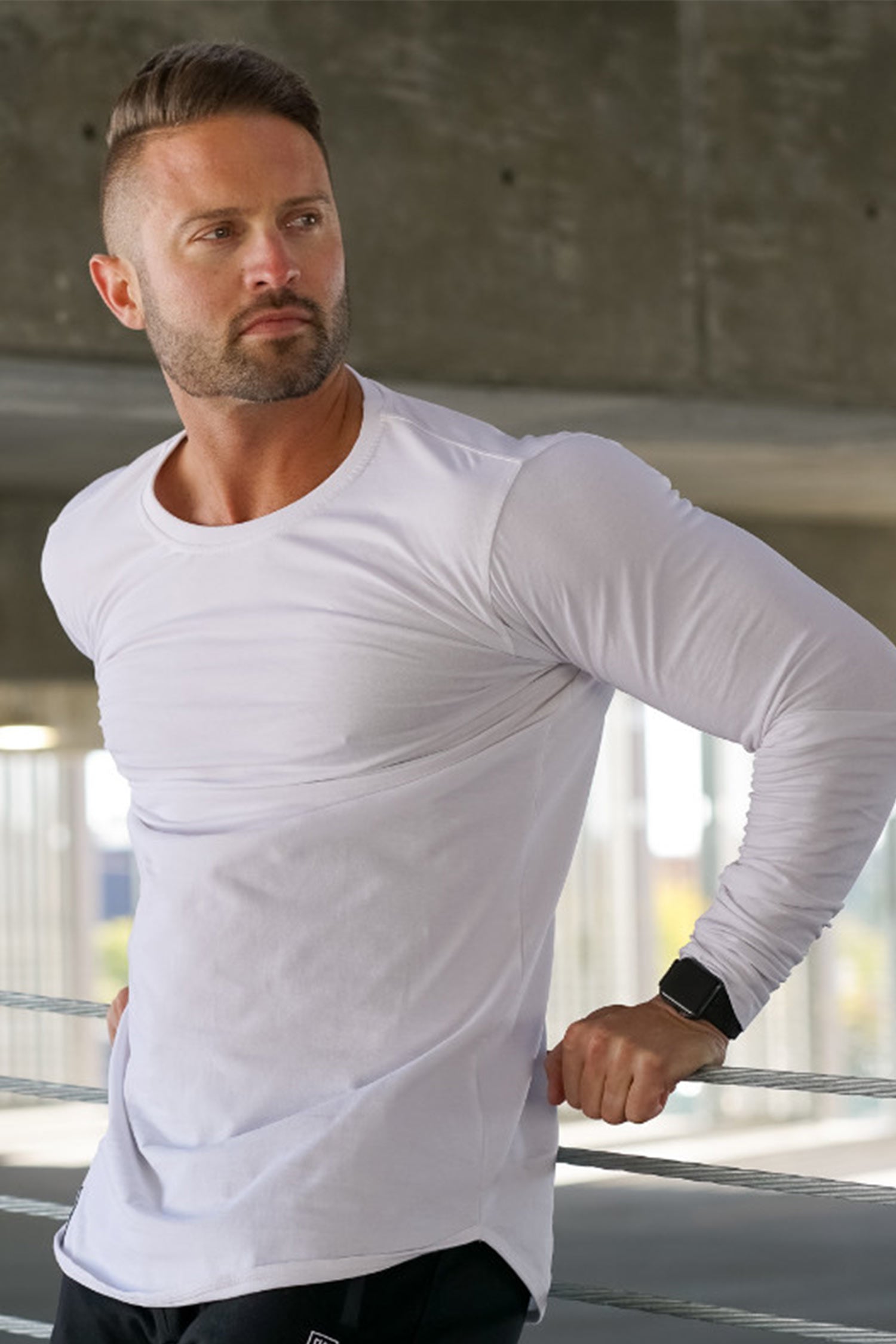 ZIVI white curved hem long sleeve form-fitted for the physique. The perfect long sleeve for any occasion from the gym to the streets. Curved shape with a small ZIVI hem tag in the right-hand pocket area. Stylish design with tight sleeves and loose on the frame.
